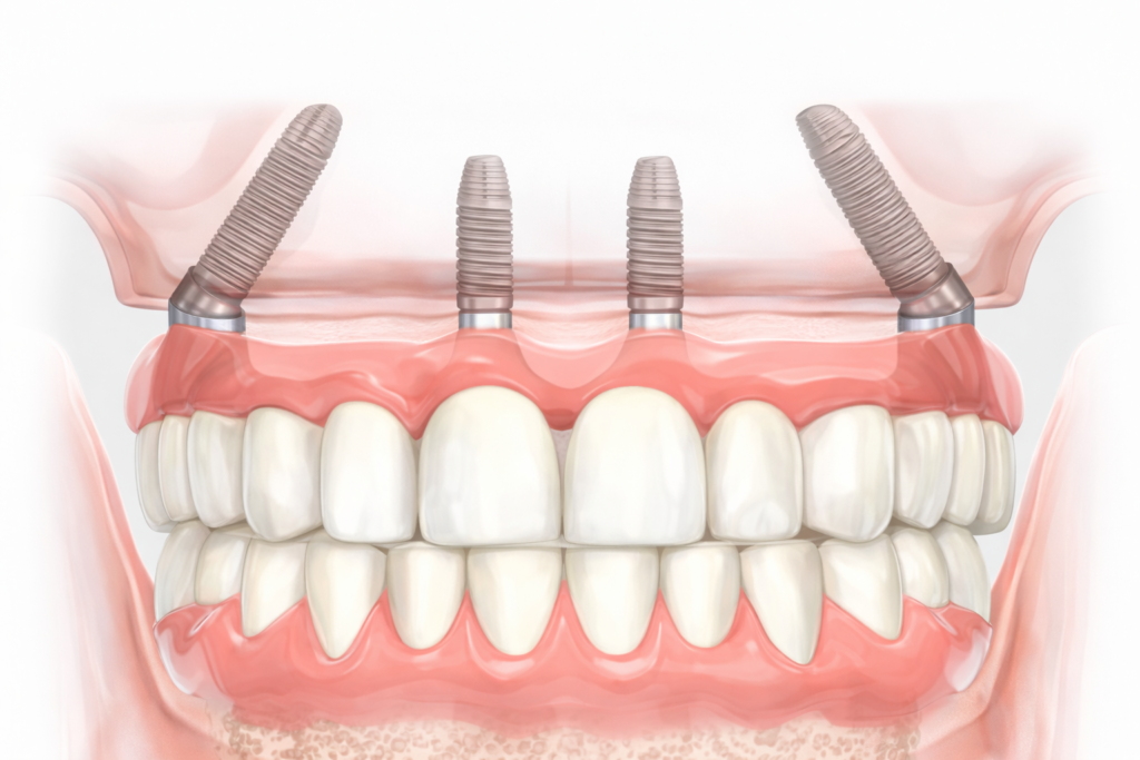 Permanent teeth supported by 4–6 implants.