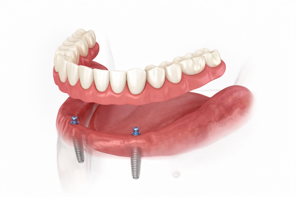 Implants are placed to create a stable foundation. Many patients receive fixed temporary teeth during healing.